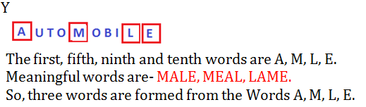 50. If it is possible to make only one meaningful word with the first, fifth, ninth and tenth letter of the word ‘AUTOMOBILE’, which would be the second letter of the word from the right? If more than one such word can be formed, give ‘Y’ as the answer. If no such word can be formed,give ‘Z’ as your answer.