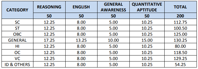 The category-wise, test-wise and total score cut-offs for Objective Tests are furnished below: