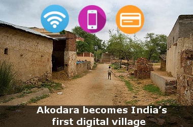 i. Akodara village in Sabarkantha district of Gujarat recently has earned the title of the first digital village in India.