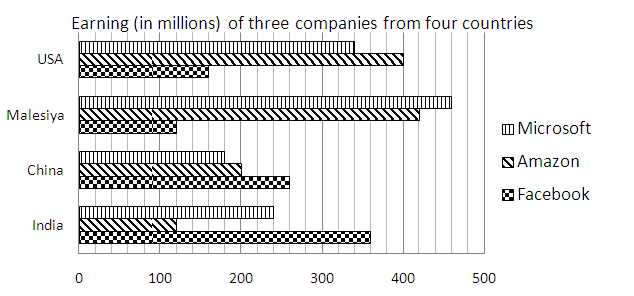 Q10. What is the difference between total earning of Microsoft from all four countries and total earning of Facebook from all four countries?