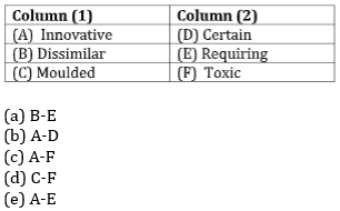 Directions (6-10): In each of the following questions given below, a sentence is given with some bold words which may contain errors. Below each of the sentence, a table is given with two columns in which column ‘A’ contains the list of bold words, and in column ‘B’ the suggested corrections are listed. You have to choose the best alternative among the four given options. If no correction is required against any given bold word mark (e), .i.e. “None of the above” as your answer.