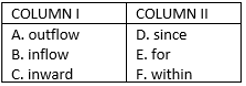 Sol. B-D is the correct pair of words for the blanks. For the first bank, ‘inflow’ will be used as the sentence is about flow of foreign capital “into” India’s stock market. ‘Since’ is the correct word for blank 2 as ‘since’ means in the intervening period between (the time mentioned) and the time under consideration, typically the present.