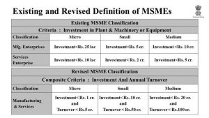 Change in Definition of MSMEs- the definition is being changed in the favour of the MSMEs. Investment limit which define MSME is being revised upwards, even with an increased investment they’ll still be under benifits of MSME. Additional critera of turneover has been brough up. Manufacturing and service-bases MSMEs to now enjoy same benefits. Now investment can be upto 1 crore and turnover upto 5 crore for an organisation to be considered under MSME.