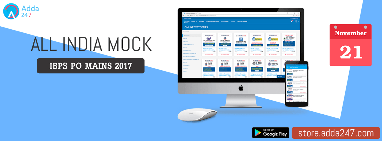 This ultimate mock is especially for IBPS PO Mains 2017 exam, which will raise the bar for your need of practice and will test your preparation with tough level questions, but don’t be worried to face the tough exam as this will give you a taste of the actual face off. All India Mock for IBPS PO Mains 2017 for everyone and it will be available on Adda247 Online Store and App; you’ll just need to use a Coupon Code IBPSPOM, so do not miss this opportunity.