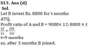 Q13. A began a business with Rs. 9000 and was joined afterwards by B with Rs.8800. At the end of the year profit were divided into the ratio of 15:11. after how much time B joined the business.