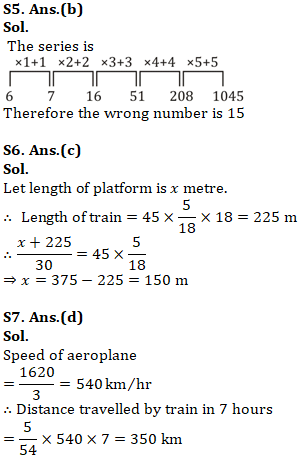 Q7. The ratio of speeds of a train and an aeroplane is 5 : 54. Plane covers a distance of 1620 km in 3 hours. How much distance train will cover in 7 hours ?