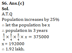 Q6. The population of city will be 375000 in 3 years if the population increases by 25% every year what is current population.