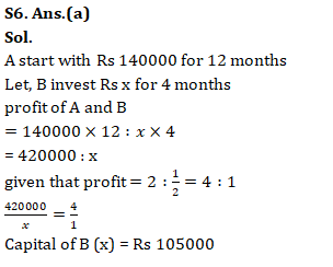 Q6. A began a business with Rs 140000 and B joins the business 4 months before of the end of year. If the profit at end of a year is divided into