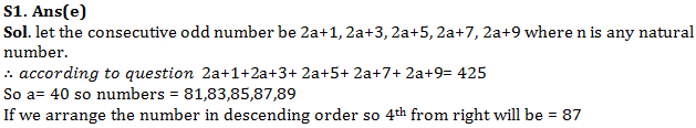 Q1. If sum of 5 consecutive odd numbers is 425, so what will be the 4th number from the right end. if numbers is arranged in descending order?
