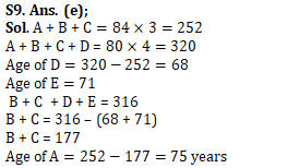 Q9. The average weight of 3 men A, B and C is 84 kg. Another man D joins the group and the average now becomes 80 kg. If another man E, whose weight is 3 kg more than that of D, replaces A, then average weight of B, C, D and E becomes 79 kg. the weight of A is: