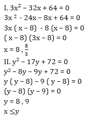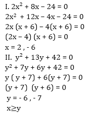 Directions (1-15): In each of these questions, two equations (I) and (II) are given. You have to solve both the equations and give answer