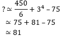 Directions (1-5): What will come at the place of question mark in the following questions? (You are not expected to find exact value) Q1. 449.98 ÷ 5.99 + (2.99)⁴ - 74.97 = ?