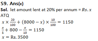 Q9. Amount of Rs. 8000 is lent at simple interest in two parts at 20% and 10% respectively. If after one year he will get Rs. 1150 as interest then find amount which was lent at 20% per annum.