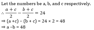 Q1. Three numbers are given. The average of first and third numbers is 24 more than the average of second and third numbers. Find out the difference between the first and second numbers.