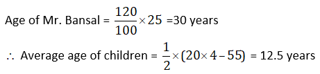 Q14. Mr. Bansal’s age is 120% of his wife Smriti’s age. They have two children. The average age of family is 20 years. If Smriti’s age is 25 years, what is the average age of children?