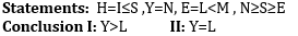 Directions(1-5): In these questions, relationship between different elements is show in the statements. The statements are followed by conclusions. Study the conclusions based on the given statements and select the appropriate answer: