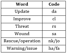 Q9. What may be the code for ‘rescue person warning’ in the given coding language?