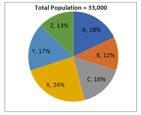 Q4. Average population of A, C & Y all together is how much less than the average population of B and X together?