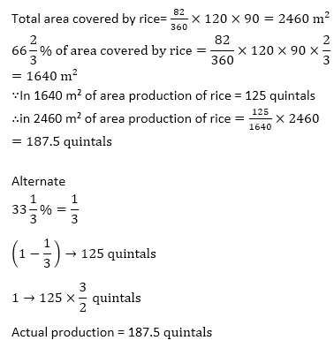 Q15. The total production of rice was 125 quintals after ofarea covered by rice was wasted away due to fire. What would be the actual production of rice (in quintals) if no wastage was there & production was in same rate throughout the rice field?