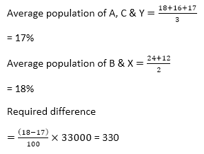 Q1. What is the difference between the population of city A & C together to the population of city X & Y together?