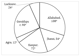 Directions (11-15): The following pie-chart and table show the distribution of total number of seats of ALP and Technician in six different RRB divisions (in degrees) and ratio of ALP and Technician seats in each given RRB divisions respectively. Study the graphs carefully to answer the following questions.