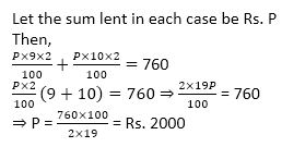 Q5. Mohan lent some amount of money at 9% simple interest and an equal amount of money at 10% simple interest each for two years. If his total interest was Rs. 760, what amount was lent in each case?