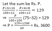 Q4. The simple interest on a certain sum for 8 months at 4% per annum is Rs. 129 less than the simple interest on the same sum for 15 months at 5% per annum. The sum is: