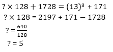 Q12. ? × 128.09 + 1728.09 = (12.99)³ + 170.99