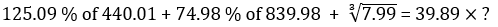 Q13. ?³ × 15.02 + 125 % of 463.94= (38.01)² + 95.98