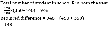 Q5. In school F the total number of students in year 2014 and 2016 together is 20% more than that in school E in both the year. Find the difference between the total number of students in school F and school B (both the years are taken together).