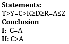 Directions (6-10): In these questions, relationship between different elements is show in the statements. The statements are followed by conclusions. Study the conclusions based on the given statements and select the appropriate answer: