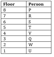Eight persons live on different floors in the same building. The building has eight floors ground floor is numbered 1 and the top most floor is numbered 8. S does not live on an odd numbered floor. There is only one person who live between the floor on which V and W live. V lives on an even numbered floor below the floor on which S lives. R lives on floor above S but below P. There are only three persons lives between U and T who lives on odd numbered floor above the floor on which V lives. S lives above the floor numbered 5. Q lives one of the floors above on which W lives.