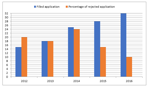 Q2. Find ratio between total applications rejected in the year 2012 to total accepted applications in the year 2014?