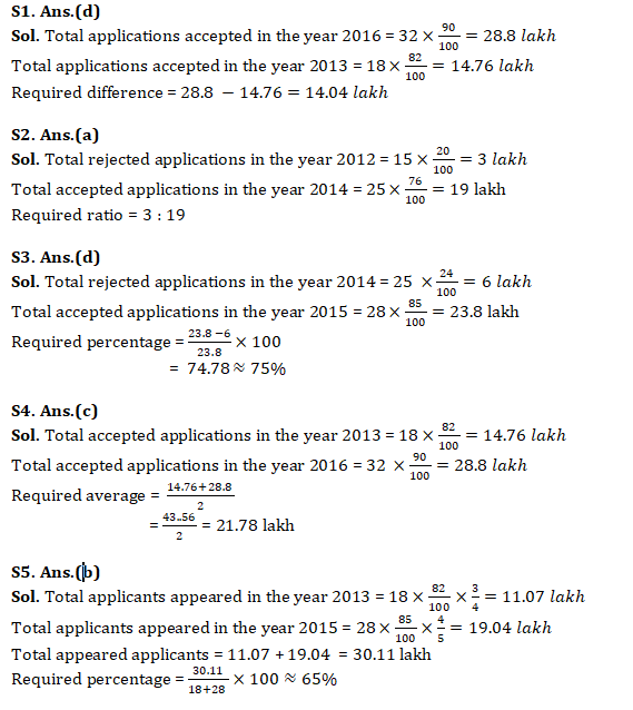 Q5. If out of total accepted applications in the year 2013 & 2015 75% & 80% applicants respectively appeared in exam, then find total appeared applicants in the exam in both the years is approximate what percent of total applicants applied in these given years?
