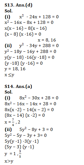 Directions (11-15): In each of these questions, two equations (I) and (II) are given. You have to solve both the equations and give answer.