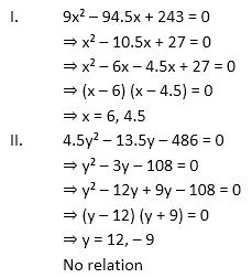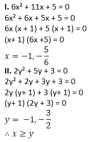 Directions (11- 15): In the following questions, two equations numbered I and II are given. You have to solve both equations and give answer among the following options.