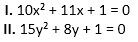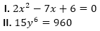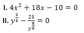 Directions (1-5): In these questions, two equations numbered I and II are given. You have to solve both the equations and give answer: