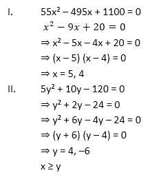 Directions (6-10): In the following questions, two equations in x and y are given. Solve these equations and give answer