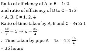Q8. A tank is filled in 5 hours when three pipes A, B and C are opened together. The pipe C is twice as fast as B and B is twice as fast as A. How much time will pipe A alone take to fill the tank?