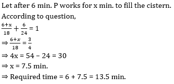 Q6. Two pipes P and Q can fill a cistern in 18 min. and 24 min. respectively. They start filling together and after 6 min. Pipe Q gets closed. In how much time the whole tank will be filled ?