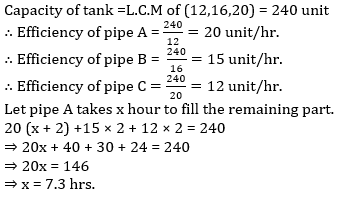 Q5. Three pipes A, b and C can fill a cistern in 12 hr. 16 hr. and 20 hr. respectively. All the pipes are opened together and after working two hours pipes B and C are closed. Find time taken by pipe A to fill the remaining part of cistern.