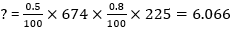 Q11. 0.5% of 674 of 0.8% of 225 = ?