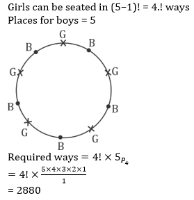 Q2. In how many different ways 4 boys can be seated among five girls around a circular table such that no two boys sit together?