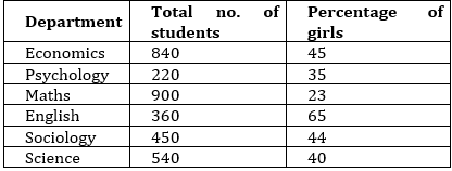 Total number of students in Different department of a college and Percentage of girls in them. Assume that there are only girls and boys in the college.