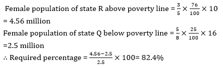 Q15. If total population of state Q and R is 16 million and 10 million respectively then female population of state R above poverty line is what percent more than the female population of state Q below poverty line?