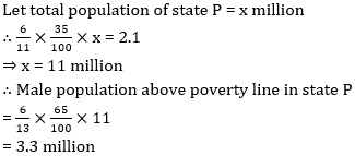 Q14. If the population of male below poverty line for State Q is 2.4 million and that for State T is 6 million, then the total populations of states Q and T are in the ratio: