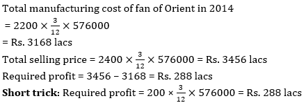 Q5. If table fan of Orient company is sold @ Rs. 2400 per fan in 2014, then find the total profit obtained by Orient company in the year 2016. Manufacturing cost of one chair of Orient in 2014 is Rs. 2200.