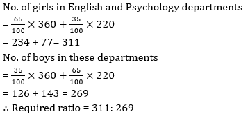Q7. What is the ratio of the number of girls in the English and Psychology departments together to the number of boys in the same departments together?