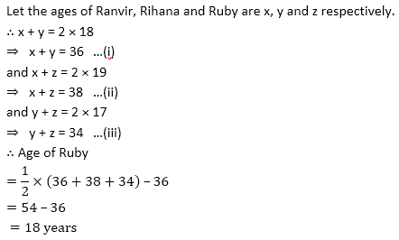 Q3. The average age of Ranvir and Rihana is 18 years. When Ruby replaces Rihana, the average age is increased by 1 and when Rihana replaces Ranvir the average age becomes 17 years. What is the age of Ruby?