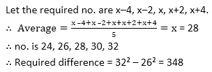 Q6. The average of five consecutive even numbers is 28. What is difference between squares of largest number and second smallest number?